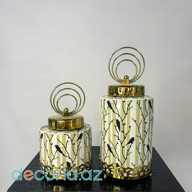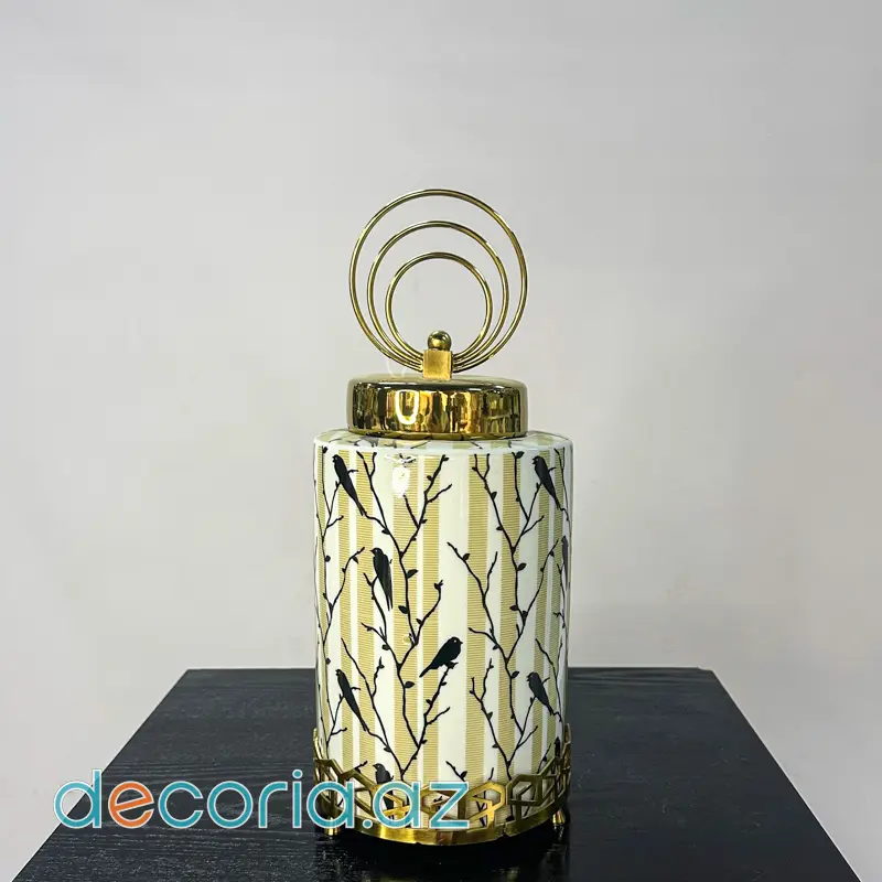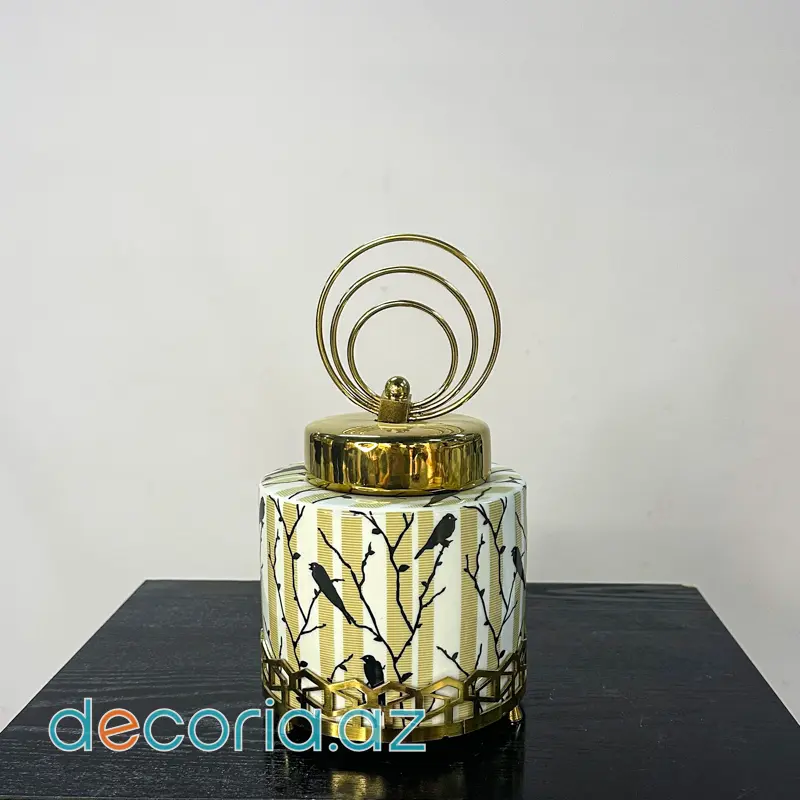 Zərif Dizaynlı Qızıl Qapaqlı Keramika Dekor Qab